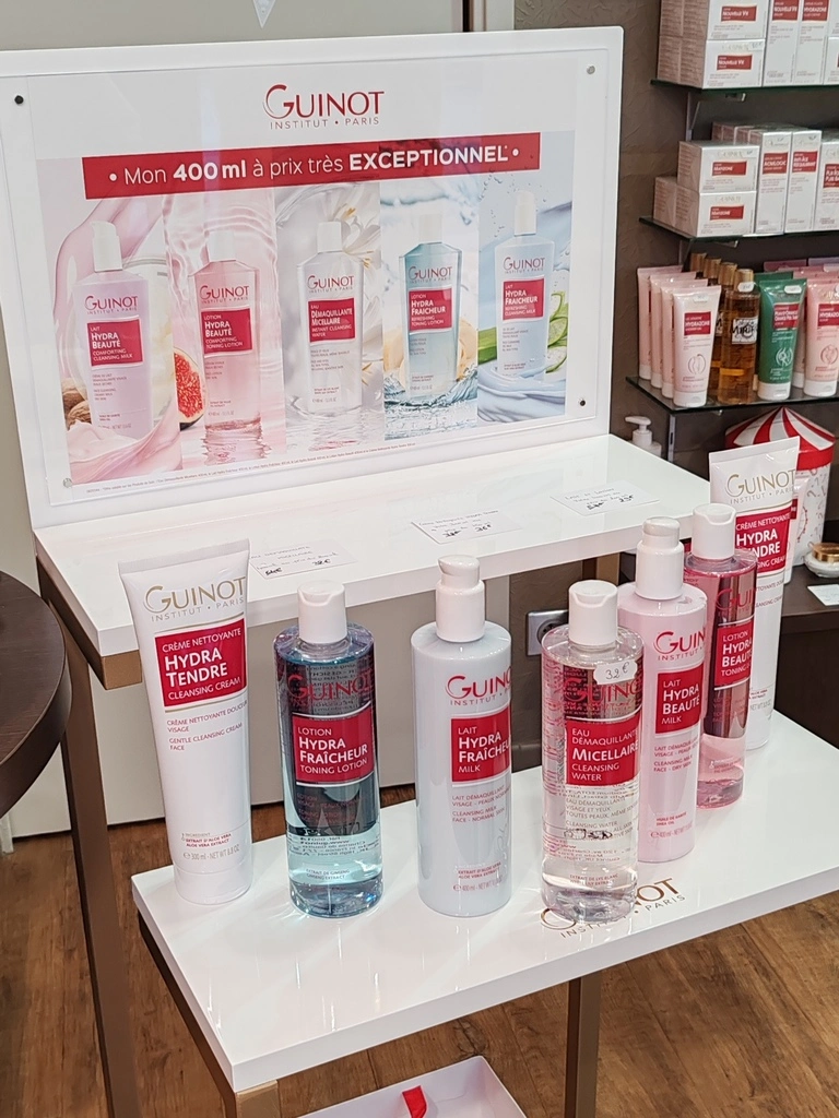 Les flacons Guinot de 400mL au prix du 200mL jusqu’à épuisement des stocks ! Voir conditions en institut Offre exceptionnelle sur les démaquillants